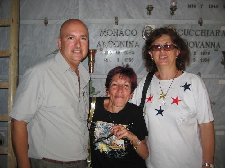 The next stop was Giovanna’s house in the center of town. Before we headed farther up the mountain to our cousin Vita’s country home for our Sunday dinner, Giovanna and her sister, Vitanna, took Tony and I to the cemetery. The word for cemetery in Italian is cimitero. After my first Italy trip, it became one of the first words I remembered because every time we drove past the cimitero, my cousins would make the Catholic sign of the cross as a prayer. It just stuck with me. Giovanna and Vitanna escorted us to the family grave sites which were contained in various mausoleums. She retrieved the keys from the attendant and opened the door of my great grandmother Antonina Monaco’s tomb, which had the name and dates of birth and death engraved on it and her photograph. This was the woman that tied us together, our shared great grandmother. The mother of Giovanna and Vitanna’s grandmother, Vita Gaglio, and the mother of my grandfather, Francesco Gaglio. This was the moment I could feel the inherent love these cousins had for my son and me, and I knew for sure that I would return to Sicily again very soon.